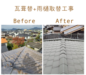 防府市H様邸 瓦葺替+雨樋取替工事