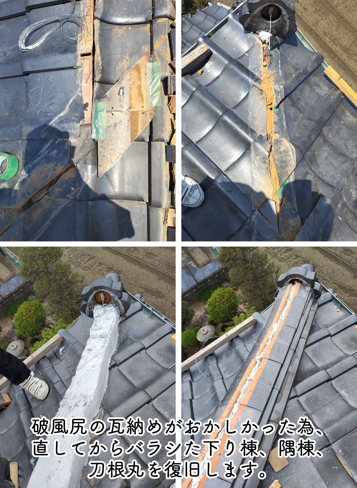 その後、隅棟、下り棟、刀根丸を復旧します。