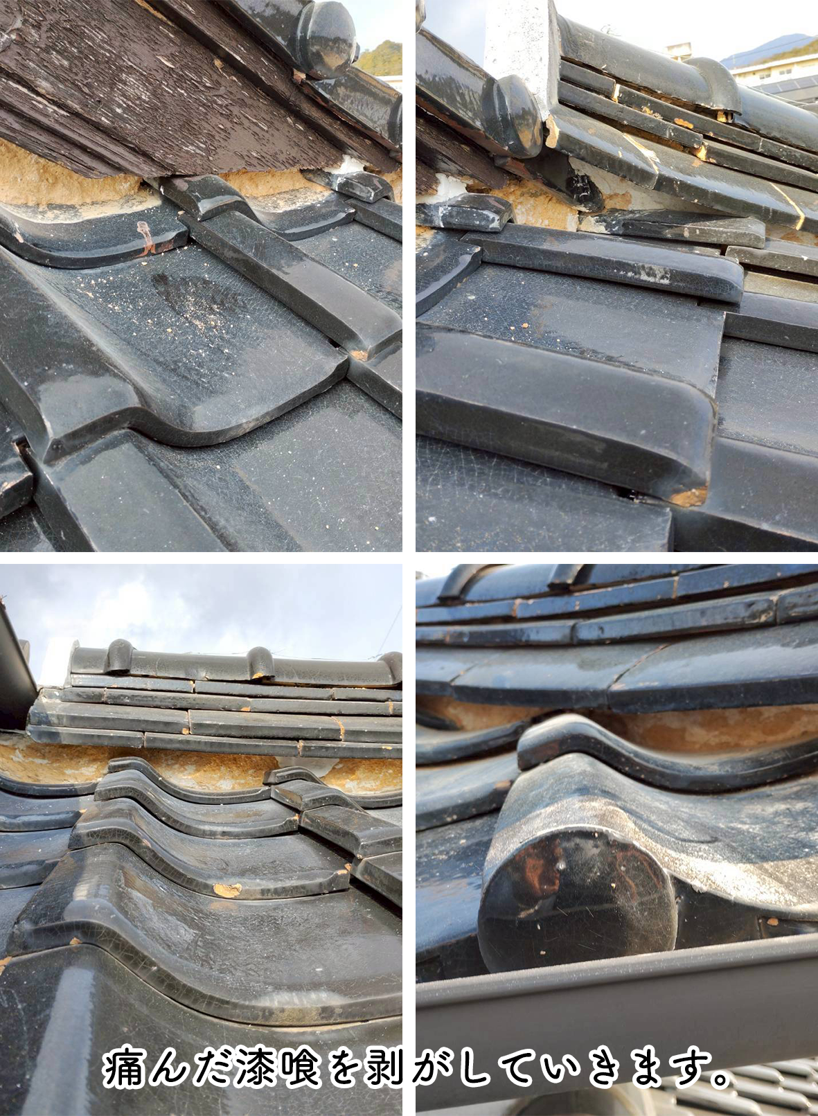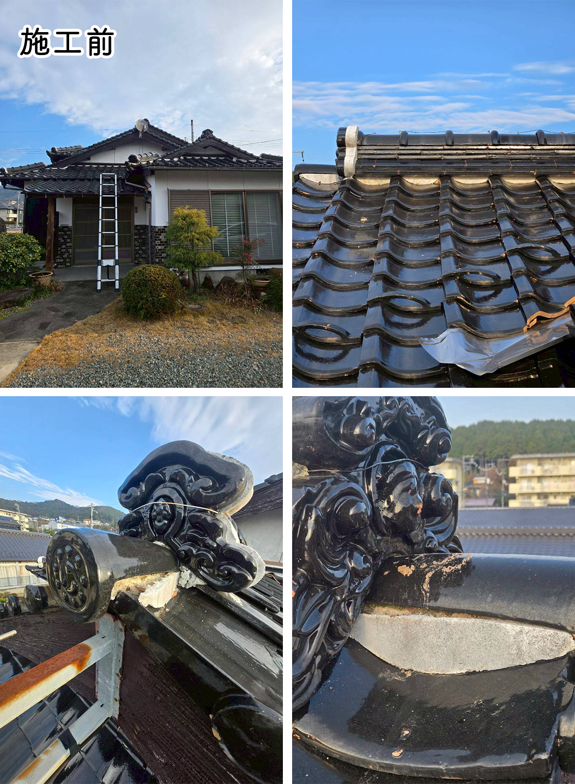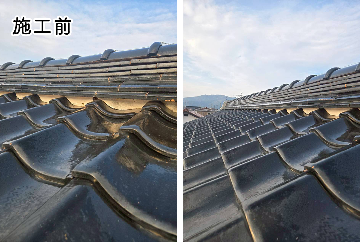 全体的に痛みのひどい状態でしたが、お客様のご希望により瓦の葺き替えは行わず、巻き直しのみ行いました。