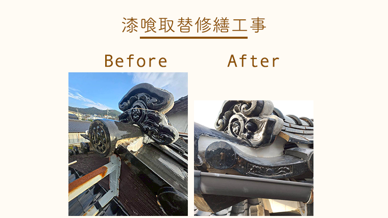 漆喰部分が劣化していたため、塗り替え工事を行いました。